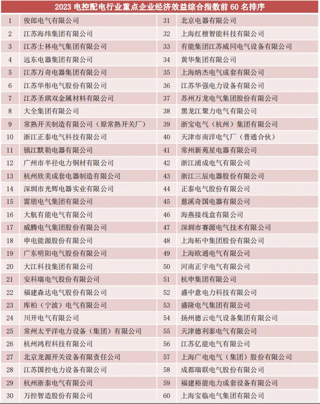 近日,廣州市半徑電力銅材有限公司(以下簡稱(chēng)“半徑銅材”)在電控配電行業中再創佳績,榮登中國電器工業協會電控配電設備(bèi)分會發布的2023年度多項重磅榜單(dān),包括“工業總産(chǎn)值第27名”、“銷售産值第30名”、“工業增加值第16名”、“經(jīng)濟(jì)效益綜合指數第12名”、“總資産貢獻率第37名”以及“資(zī)本保值增值率第4名”。